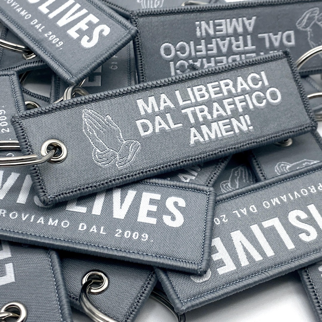 Se sei costretto a fare tutti i giorni la Pontina, il Raccordo o qualsiasi altra strada trafficata che ti fa imprecare più della tua squadra del cuore, il nostro nuovo portachiavi ricamato con definizione micro HD potrebbe fare al caso tuo!
