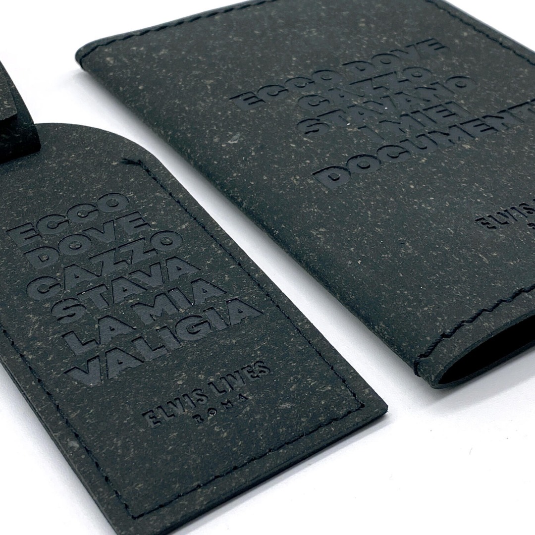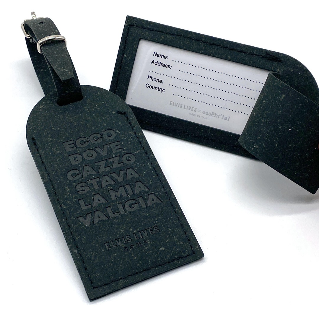 Tag per Valigia in pelle riciclata con fibbia in metallo.