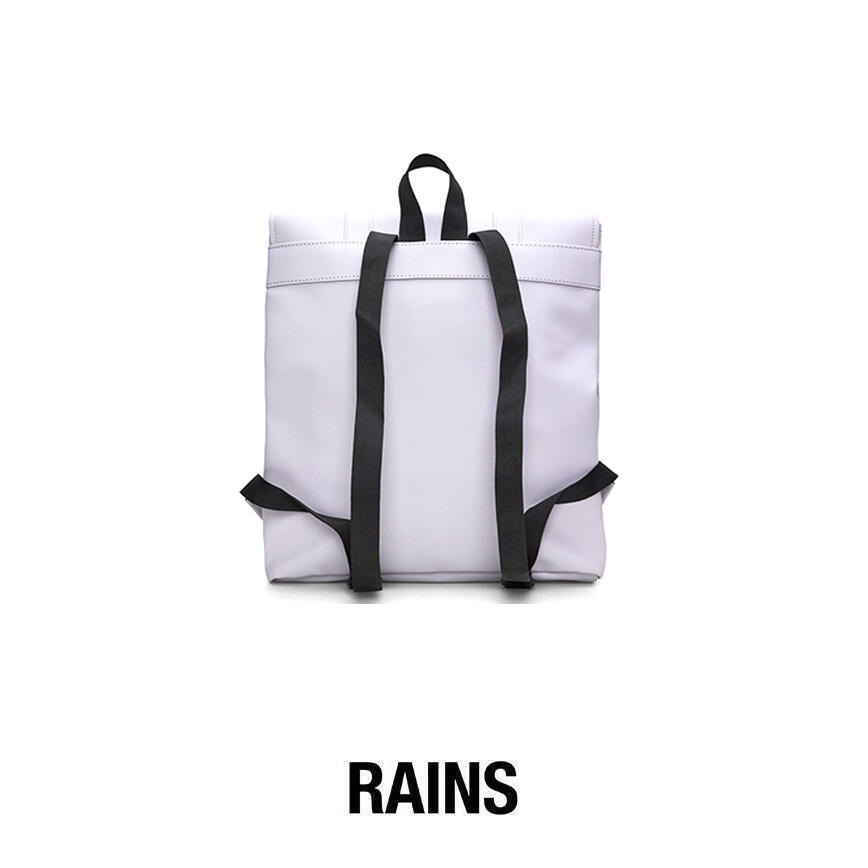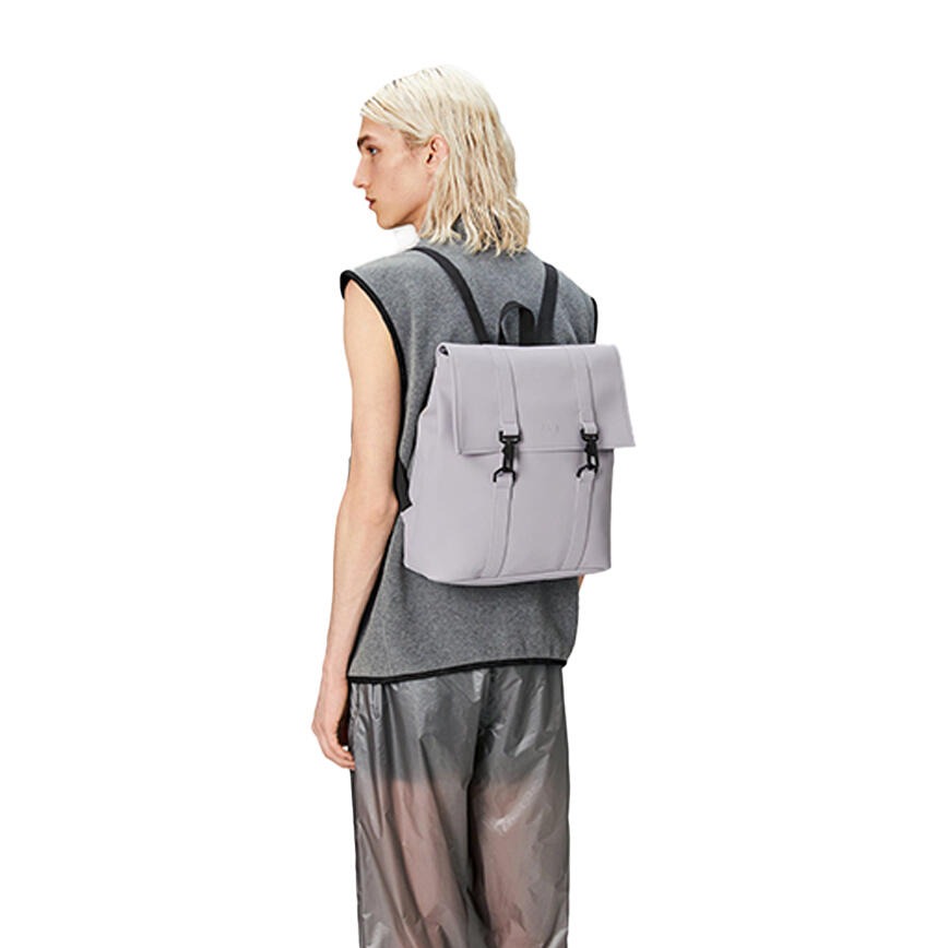 L\'MSN Mini è una versione più piccola della classica borsa MSN di Rains. Ispirata al tradizionale zaino scolastico, la silhouette della MSN è realizzata con il classico tessuto impermeabile di Rains. Completamente foderata, impermeabile ma moderna, l\'MSN Mini è dotata di uno scomparto principale e di bottoni a pressione regolabili ai lati. L\'MSN Mini è rifinita con fettucce decorative e il classico moschettone Rains.