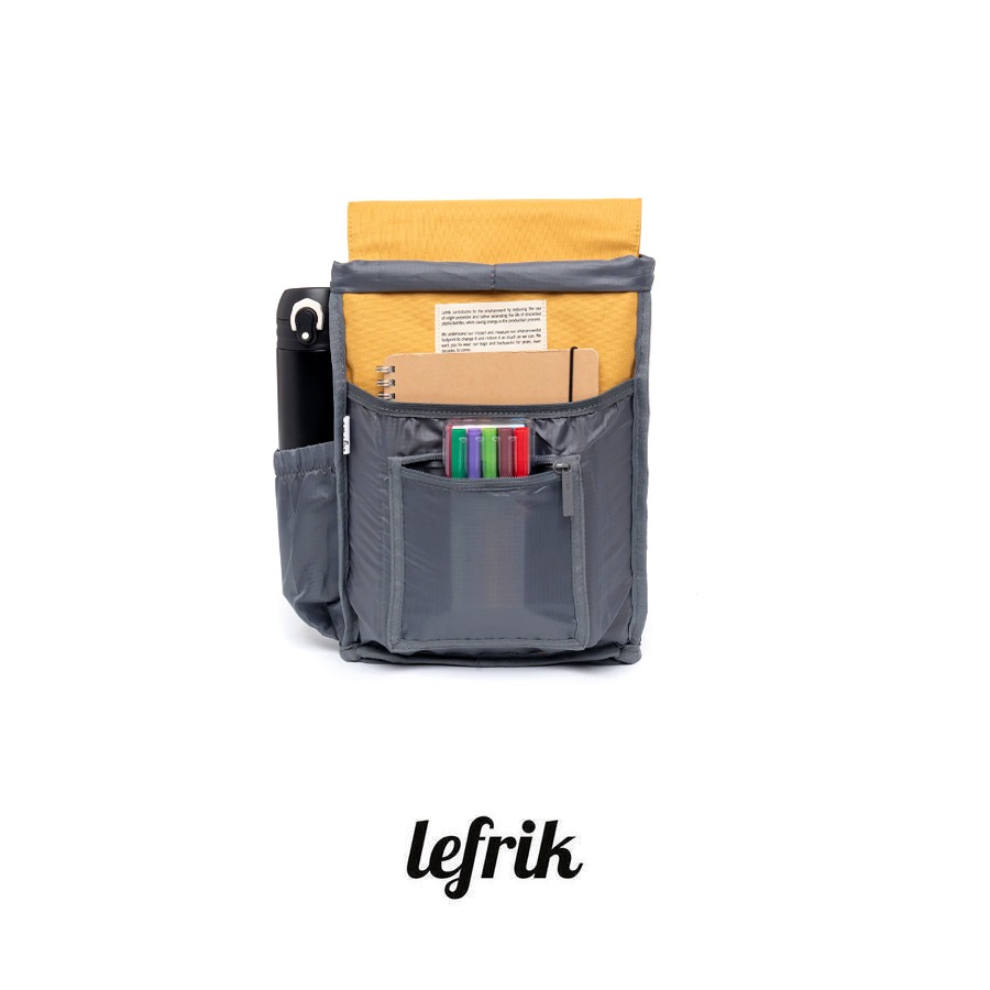 Lo Scout mini é lo zaino di Lefrik sostenibile più piccolo, pensato per piccoli oggetti o come perfetto zaino scolastico per i bambini. I manici in cotone lo rendono comodo da portare in giro. Caratterizzato da uno scomparto interno separato, una tasca interna con zip e una tasca con zip sul retro. La chiusura e la patta con gancio in metallo proteggono i tuoi effetti personali dalla pioggia.