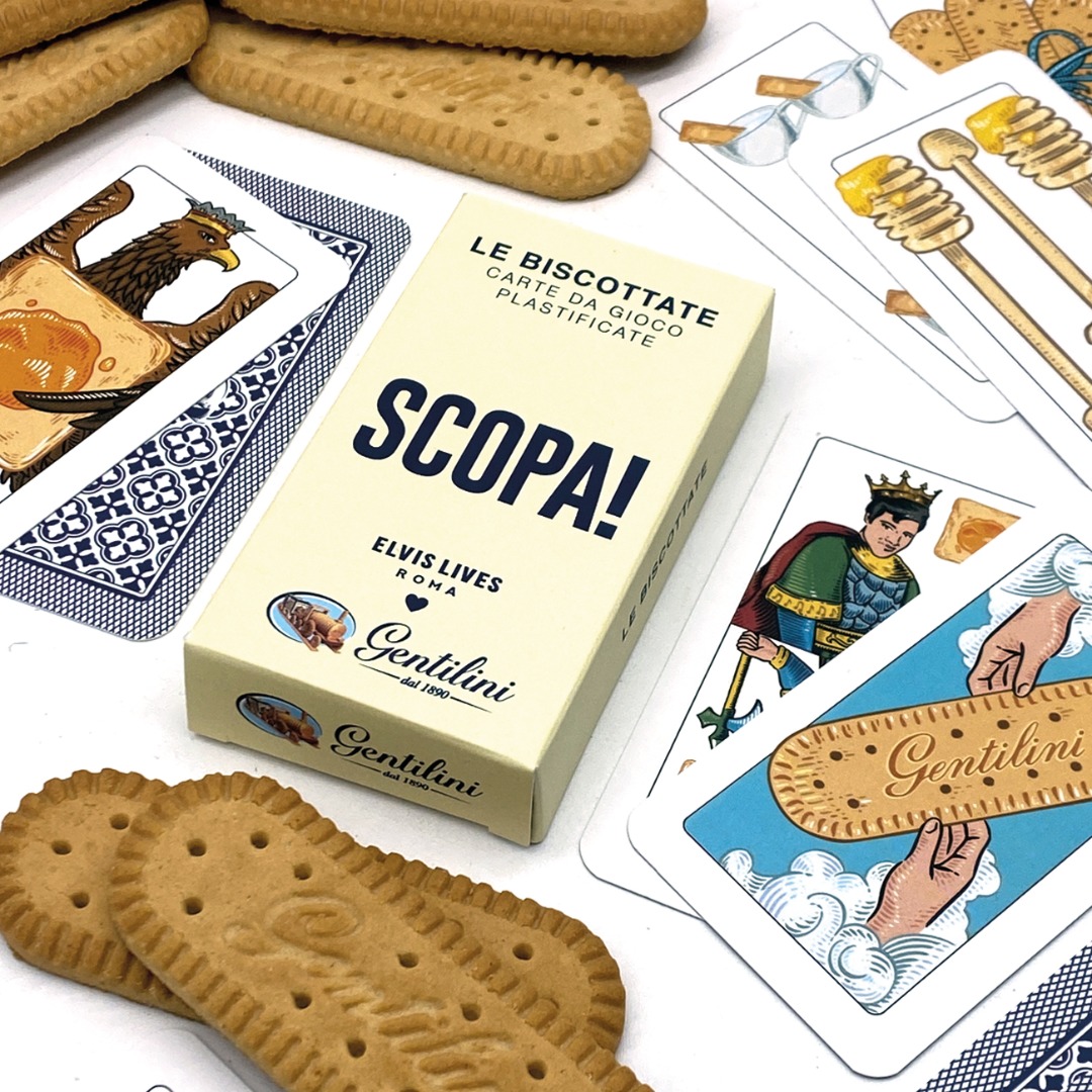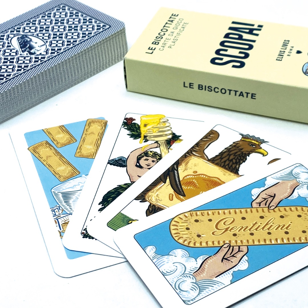 Le Biscottate sono un mazzo di carte da gioco realizzato in collaborazione con Gentilini e dedicate alla tradizione dolciaria romana, illustrate una ad una dalla sapiente mano di un illustratore d\'eccezione: Luca \"MkLane\" Laurenti.